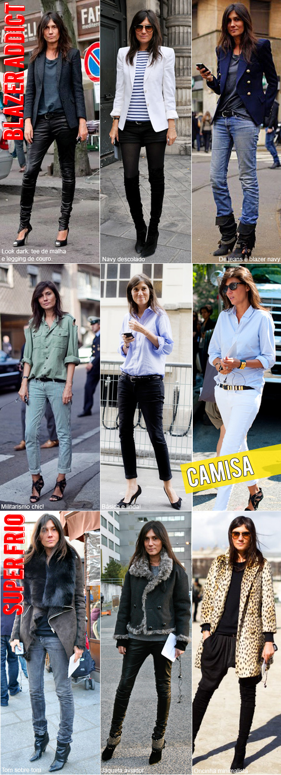 E se você acha que pra carregar um título tão bafônico a moça deveria estar sempre vestindo o último grito fashion (“Ahhhhhhh!!!!! Cadê meu neon?!”), deixe esse estereótipo para nossa migue Anninha Dello Russo. Pois Emanuelle é praticamente uma definição ambulante perfeita do estilo francês: básica, minimalista, descolada e nem um pouco perua. Tipo overdose de “je ne sais quoi“, saca?